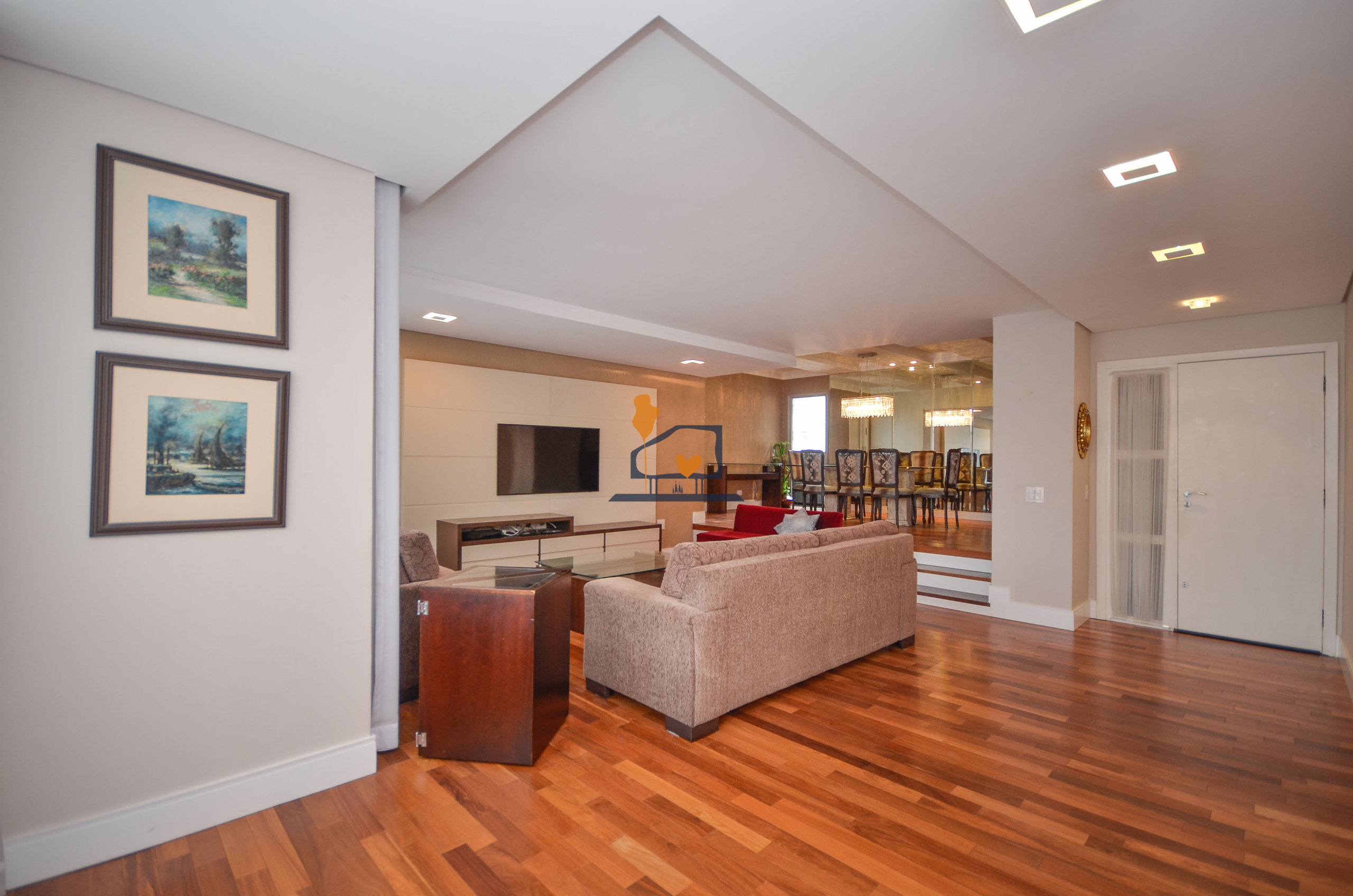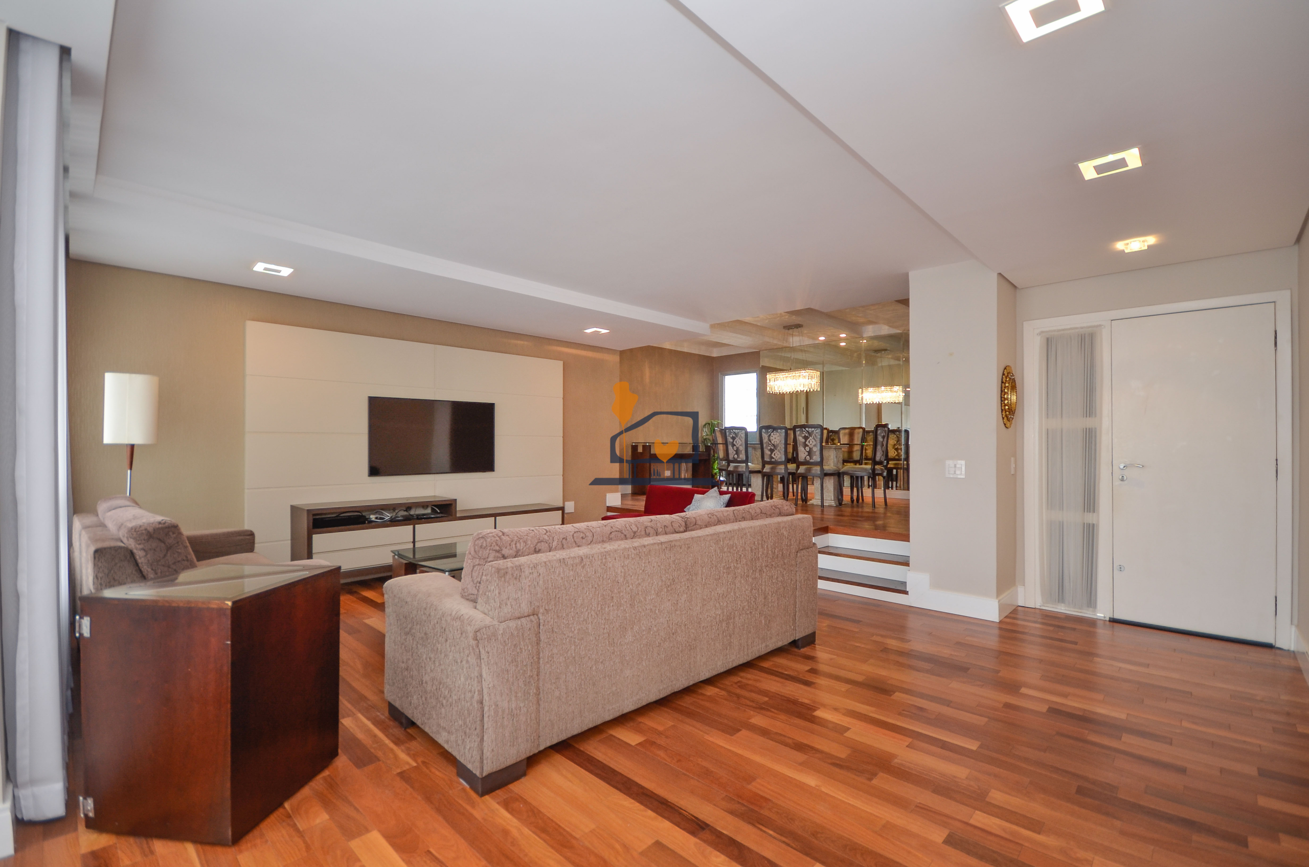 Salas amplas com piso de madeira